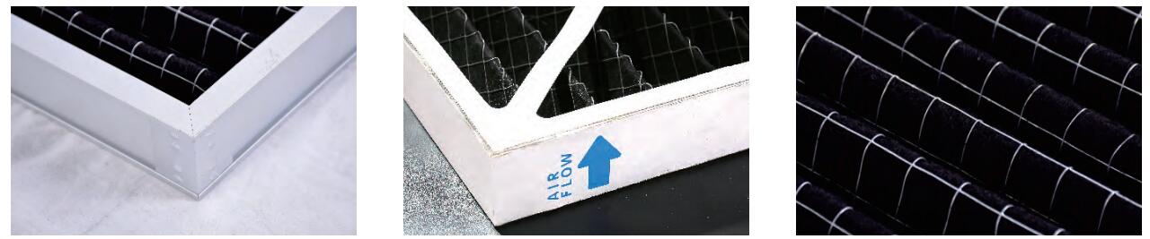 - The filtration material is made from activated carbon fiber. It has the advantage of the large dust holding capacity, the low pressure loss in the initial period and lager air flow.